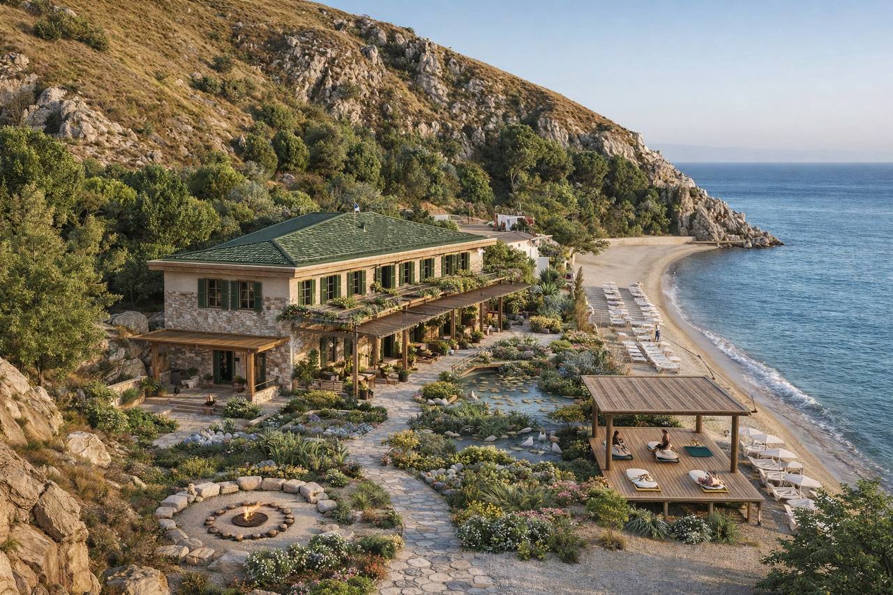 Boutique wellness retreat on Avsha Island, Sea of Marmara. Year-round thermal springs, 90 min from Istanbul. European wellness tourism hotspot.